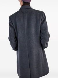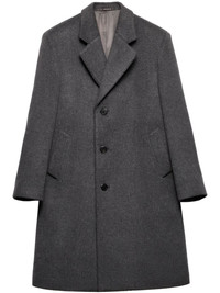 single-breasted wool coat Highlights - Charcoal grey - Wool - Logo patch to the rear - Notched lapels - Front button fastening - Long sleeves - Two side welt pockets - American rear vent - Full lining - Knee-length - Straight hem Composition Wool 100%