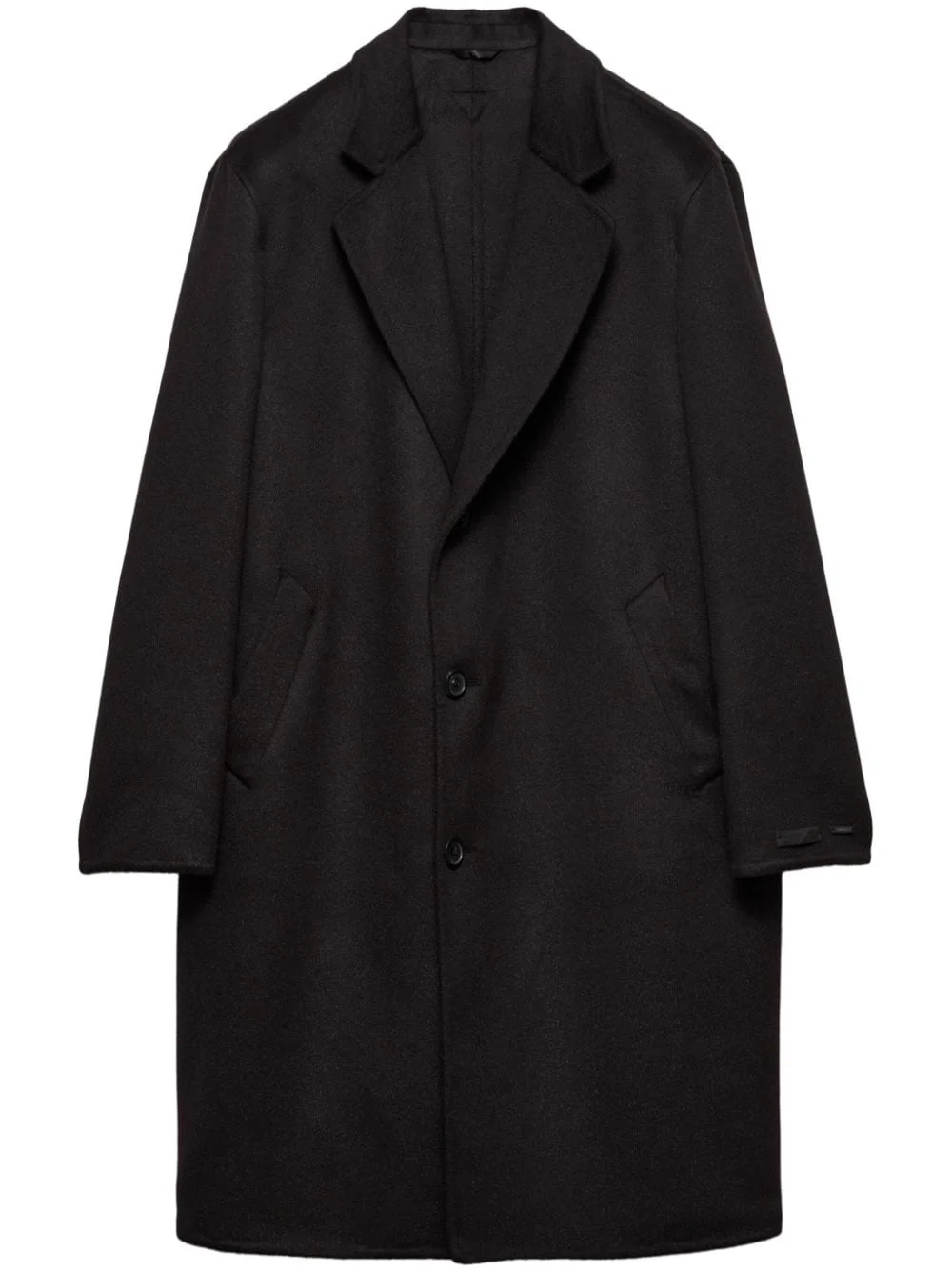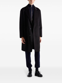 single-breasted wool coat Highlights - Black - Wool - Double-breasted button fastening - Notched lapels - Long sleeves - Two side welt pockets - Triangle logo - Unlined - Knee-length Composition Wool 100%