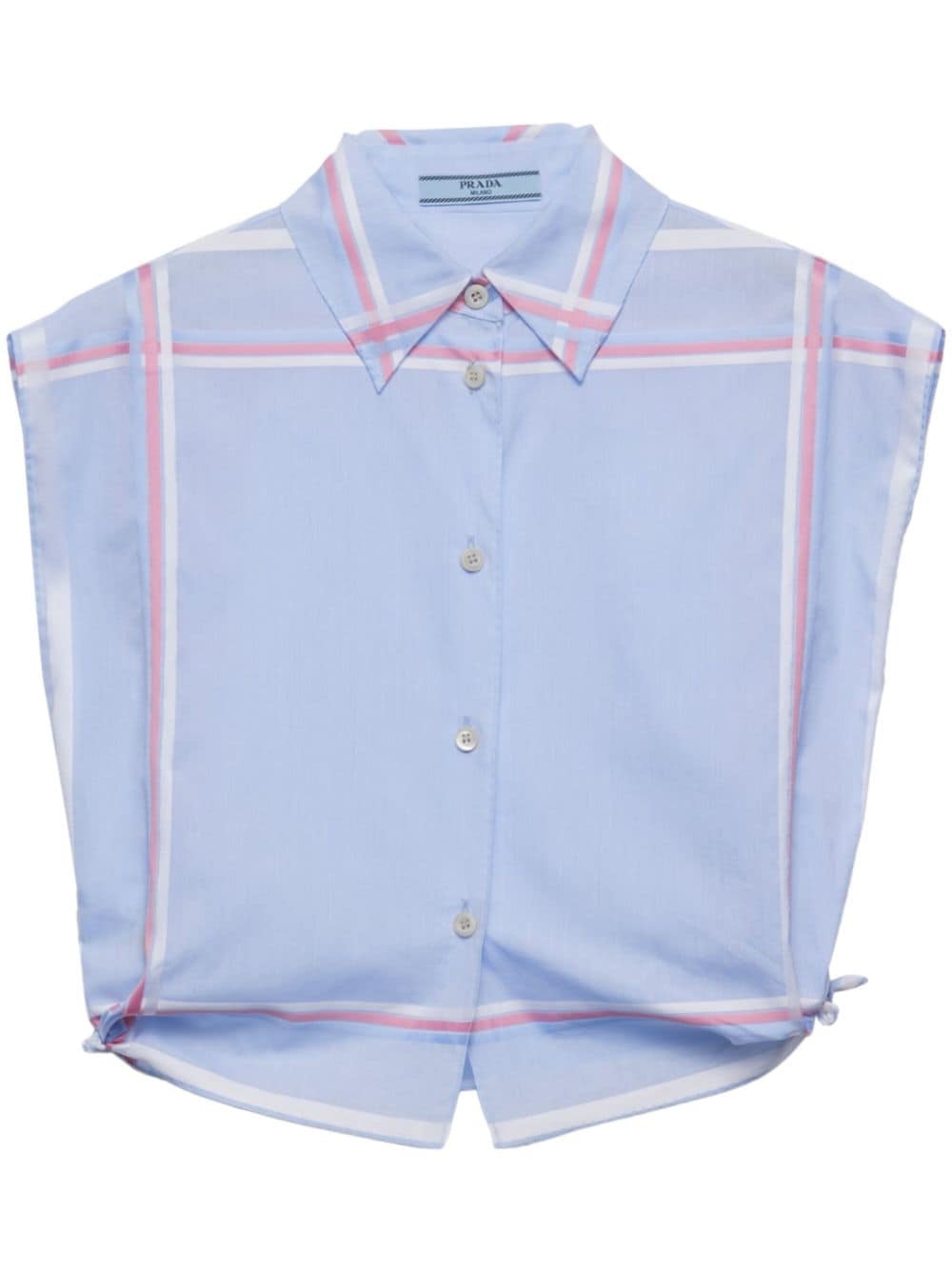 sleeveless cropped poplin shirt Highlights - Blue/white/red - Cotton - Poplin texture - Bold check pattern - Embroidered logo to the rear - Classic collar - Front button fastening - Sleeveless - Cropped - Curved hem Composition Cotton 100%