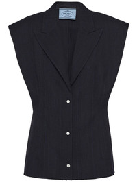 sleeveless wool blazer Highlights - Navy blue - Virgin wool - Vertical stripe pattern - Peak lapels - Front button fastening - Shoulder pads - Sleeveless - Detachable waist belt - Belt loops - Unlined - Straight hem Composition Wool 100% Washing instructions Read Manufacturer Guidelines