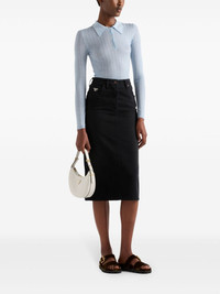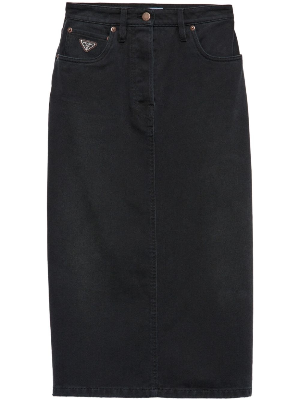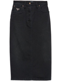 slit denim midi-skirt Highlights - Black - Cotton - Denim - Classic five pockets - Triangle logo - Logo patch to the rear - Concealed fly and button fastening - Belt loops - Rear slit Composition Cotton 100%