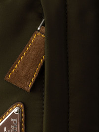 small canvas utility shoulder bag Highlights - Olive green - Adjustable shoulder strap - Logo plaque - Front zip pocket - Contrast stitching - Detachable strap elements Composition Lining: Recycled Nylon 100% Outer: Recycled Polyamide 100%, Suede 100% SIZE & FIT Measurement DEPTH 3.93 in(10 cm) HEIGHT 4.92 in(12.5 cm) WIDTH 7.87 in(20 cm)