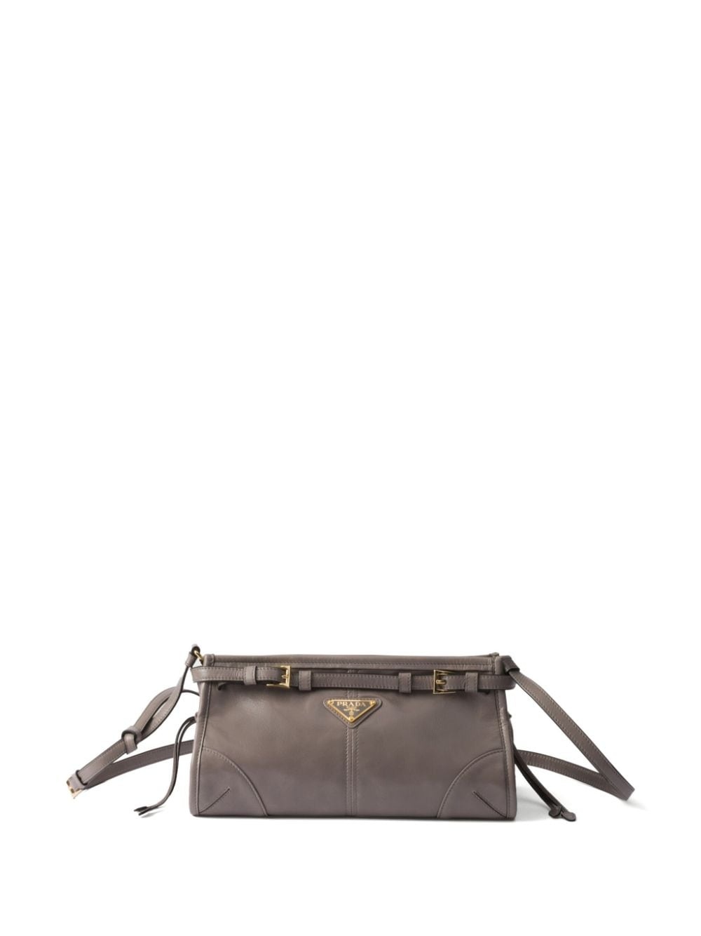 small Bonnie shoulder bag Highlights - Grey - Leather - Crinkled finish - Adjustable detachable shoulder strap - Enamel triangle logo - Gold-tone hardware - Logo-print lining - Internal zip-fastening pocket - Internal patch pocket - Main compartment - Top zip fastening Composition Outer: Leather 100% Lining: Nylon 100%, Nappa Leather 100% SIZE & FIT Measurement DEPTH 4.72 in(12 cm) HEIGHT 5.51 in(14 cm) STRAP 41.33 in(105 cm) WIDTH 10.23 in(26 cm)