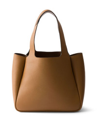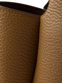 small leather tote bag Highlights - Caramel brown - Concealed magnetic fastening - Two flat top handles - Partitioned compartment - This piece comes complete with a protective dust bag. Composition Outer: Calf Leather 100% Lining: Nappa Leather 100% SIZE & FIT Measurement DEPTH 5.51 in(14 cm) HEIGHT 8.46 in(21.5 cm) WIDTH 9.84 in(25 cm)