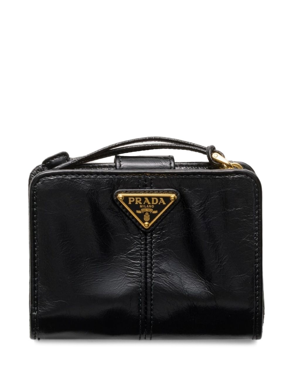 small leather wallet Highlights - Black - Gold-tone hardware - Zip-fastening pocket - Internal card slots - Logo plaque - Detachable wrist strap Composition Outer: Calf Leather 100% SIZE & FIT Measurement LENGTH 3.34 in(8.5 cm) WIDTH 4.72 in(12 cm)