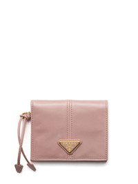 small leather wallet Highlights - Pink - Calf leather - Press-stud fastening - Bi-fold design - Enamel triangle logo - Internal card slots - Internal flap pocket - Internal logo stamp Composition Outer: Calf Leather 100% SIZE & FIT Measurement HEIGHT 4.4 in(11.2 cm) WIDTH 3.34 in(8.5 cm)