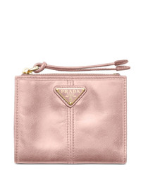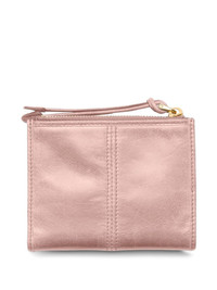 small leather wallet Highlights - Rose pink - Triangular logo - Zip closure - Zip-puller straps - Gold-tone hardware - Multiple card slots Composition Outer: Calf Leather 100% Lining: Fabric 100%, Leather 100% SIZE & FIT Measurement LENGTH 4.52 in(11.5 cm) WIDTH 3.34 in(8.5 cm)