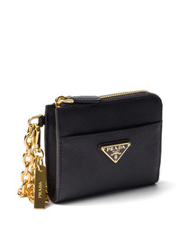 small Saffiano wallet Highlights - Black - Top zip fastening - Enamel triangle logo - Internal card slots Composition Outer: Saffiano Leather 100%
