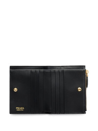 small textured leather wallet Highlights - Black - Triangle logo - Zip closure - Gold-tone hardware - Card slots - Compact design Composition Outer: Calf Leather 100% SIZE & FIT Measurement LENGTH 3.34 in(8.5 cm) WIDTH 4.52 in(11.5 cm)