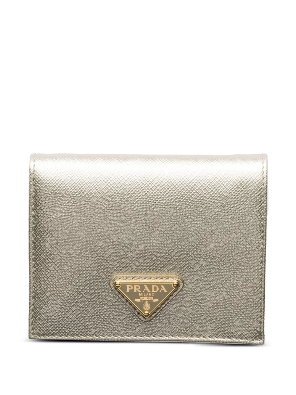 small triangle-logo leather wallet Highlights - Gold-tone - Leather - Triangle logo - Snap fastener - Internal coin pocket flap - Three card slots Composition Outer: Calf Leather 100% SIZE & FIT Measurement HEIGHT 4.4 in(11.2 cm) WIDTH 3.34 in(8.5 cm)