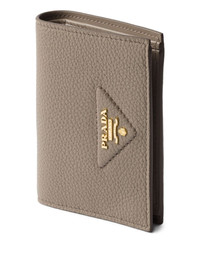 small triangle-logo wallet Highlights - Taupe beige - Triangular logo - Snap closure - Multiple card slots - Compact design - Embossed detailing Composition Lining: Leather 100%, Fabric 100% Outer: Calf Leather 100% SIZE & FIT Measurement LENGTH 4.72 in(12 cm) WIDTH 3.34 in(8.5 cm)