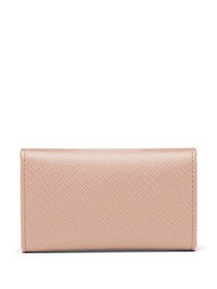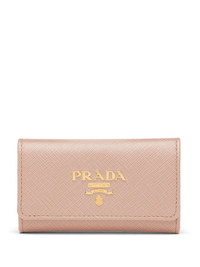 snap key case You'd lose your head if it wasn't attached. Luckily this powder pink leather snap key case will carry all those precious things you tend to lose twice a day. Thank Prada. Featuring a foldover top with snap closure, a front logo plaque, gold-tone hardware and an internal logo stamp. Composition Outer: Calf Leather 100%, Metal 100%