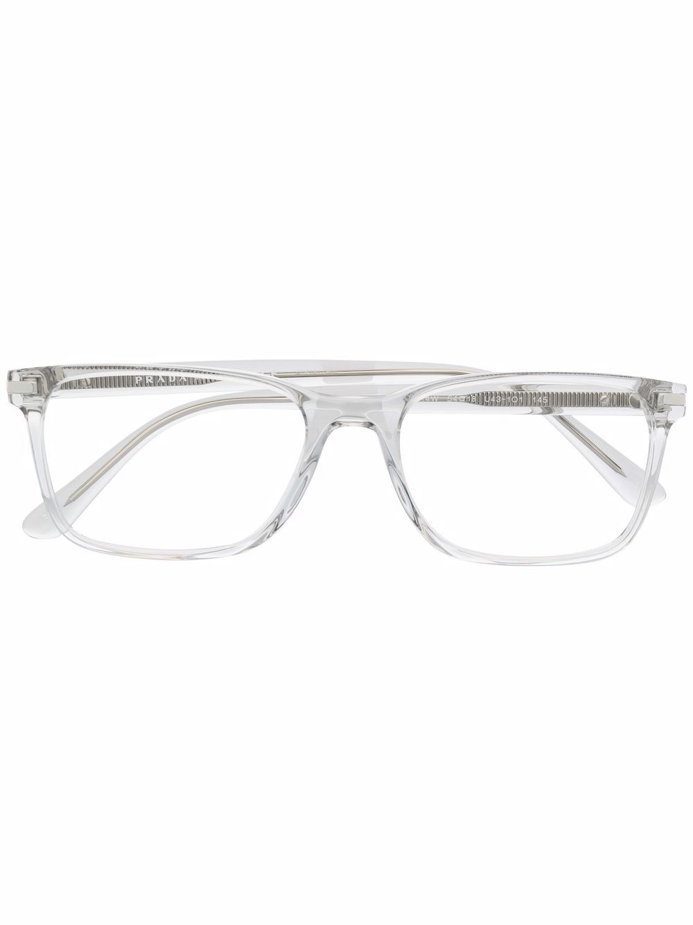 square-frame glasses Prada Eyewear offers timeless glasses, designed to complement every look. This square frame pair is crafted from acetate for a traditional feel. Composition Acetate 100% SIZE & FIT Measurement Arm Length 5.7 in(14.5 cm) Bridge Width 0.7 in(1.8 cm) Lens Diameter 2.12 in(5.4 cm) Total Width 5.9 in(15 cm)