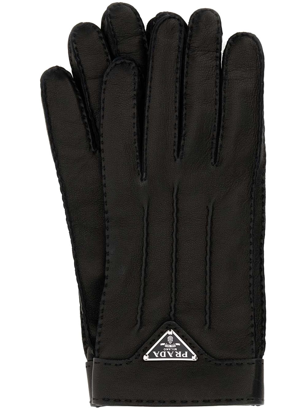 enamel-logo leather gloves Highlights - Black - Leather/cashmere - Enamel triangle logo - Tonal stitching - Slip-on style Composition Lining: Cashmere 100% Outer: Enamel 100%, Lamb Skin 100%