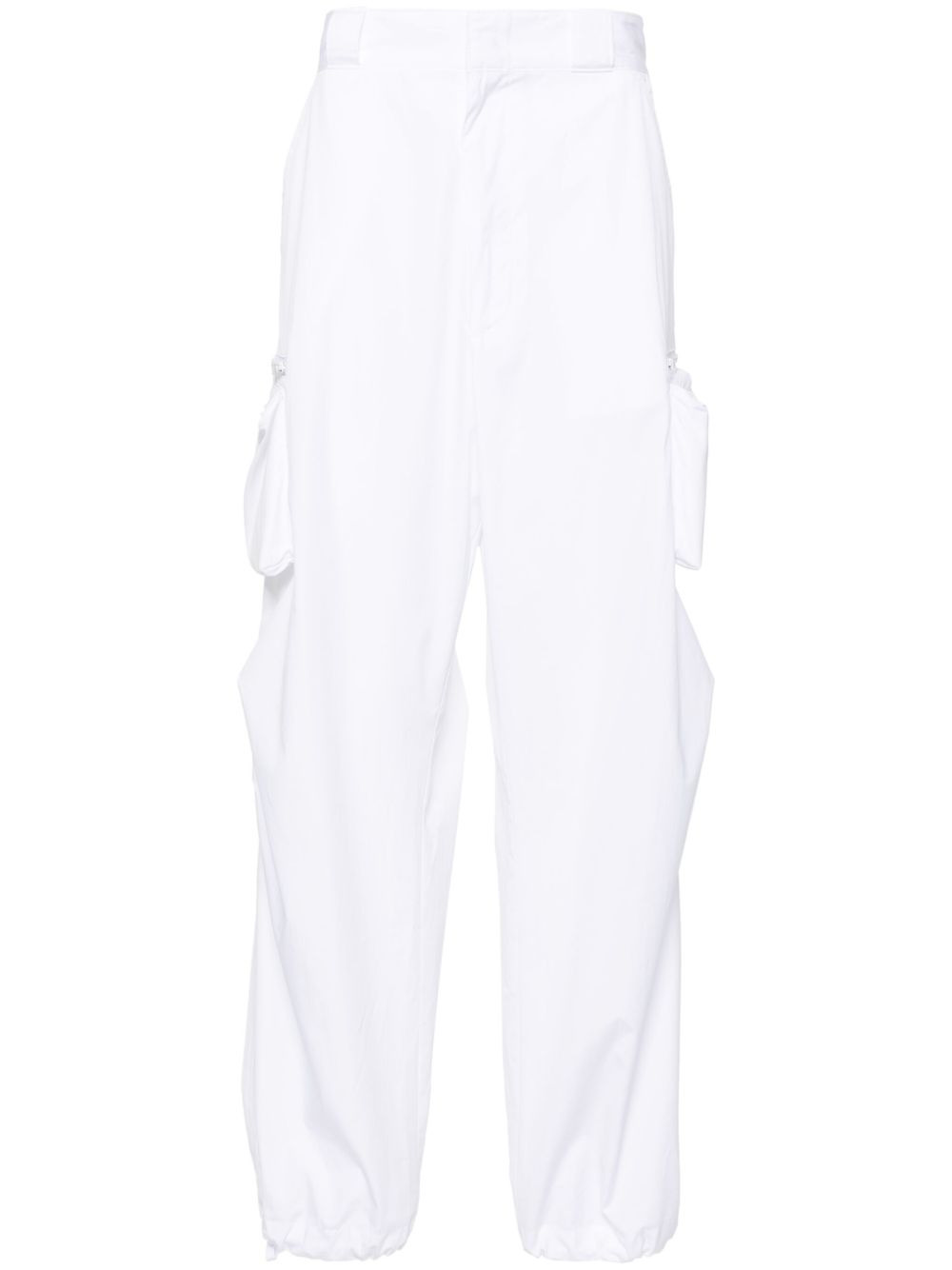 straight cotton cargo trousers Highlights - White - Cotton - Logo plaque - Belt loops - Concealed front fastening - Straight leg - Two side slit pockets - Four front zip fastening pockets - Two rear welt pockets - Rear flap pocket - Drawstring cuffs Composition Lining: Cotton 100% Outer: Cotton 100% SIZE & FIT Model measurements Height 6 ft 2 in(1.87 m) Bust/Chest 36.41 in(92.5 cm) Hips 35.43 in(90 cm) Waist 29.52 in(75 cm) FittingInformation Designed with a wide leg, offering a loose and roomy fit The internal drawstring at the hem allows for fitted preferences at the ankle Made from a midweight non-stretch fabric This piece fits large – take one size down Washing instructions Hand Wash