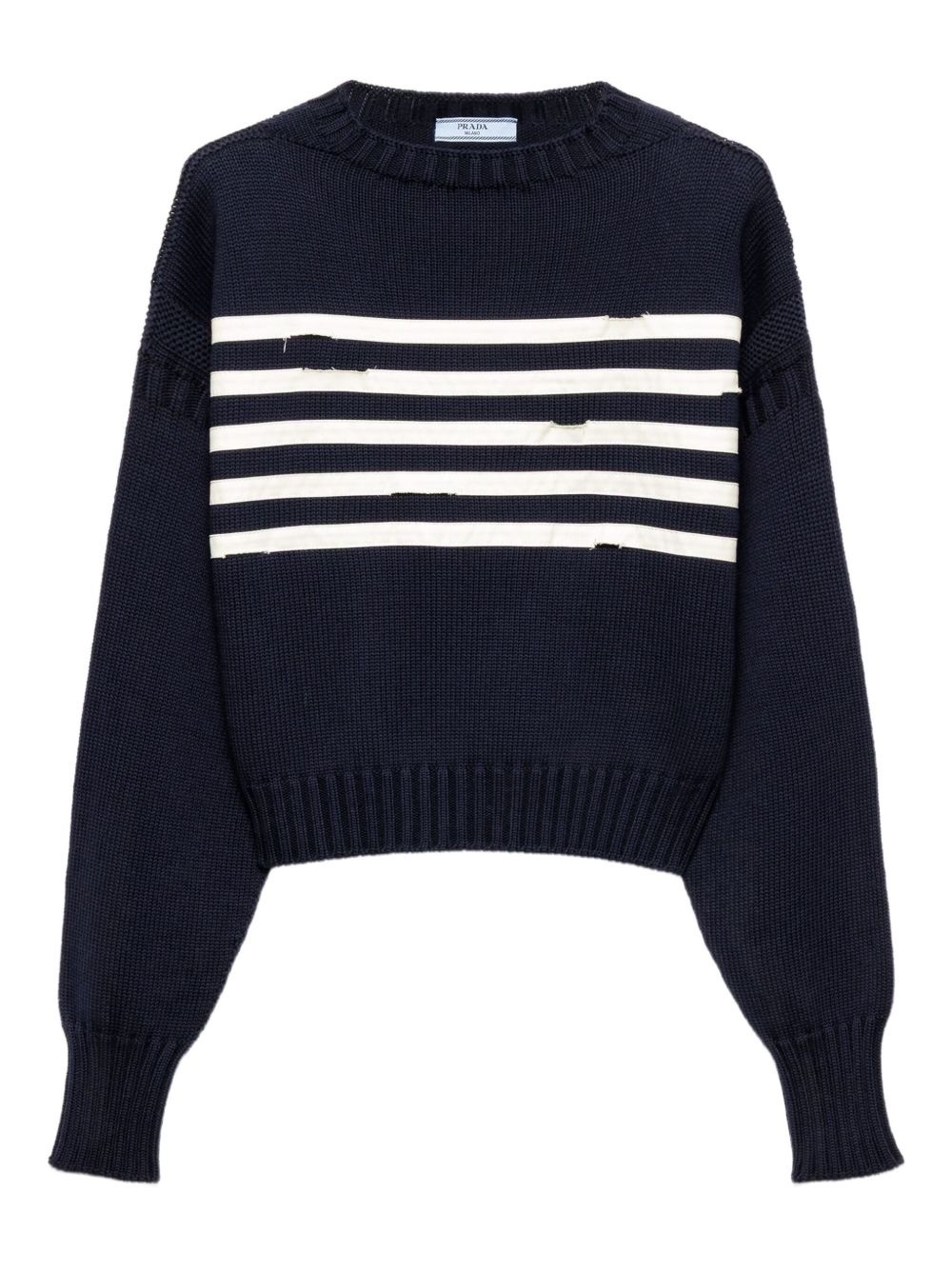 striped cotton sweater Highlights - Navy blue - Round neck - Knitted construction - Distressed effect - Ribbed cuffs and hem Composition Cotton 100%