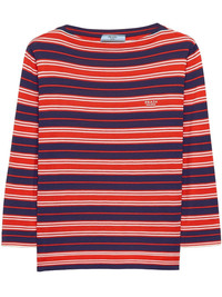 striped T-shirt Highlights - Red - Boat neck - Embroidered logo at the chest - Three-quarter length sleeves - Straight hem Composition Silk 100%