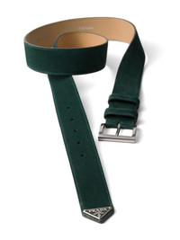 Suede beltenamel-logo suede belt Highlights - Forest green - Suede - Enamel triangle logo - Punch-hole detailing - Pin-buckle fastening - Adjustable fit Composition Suede 100%