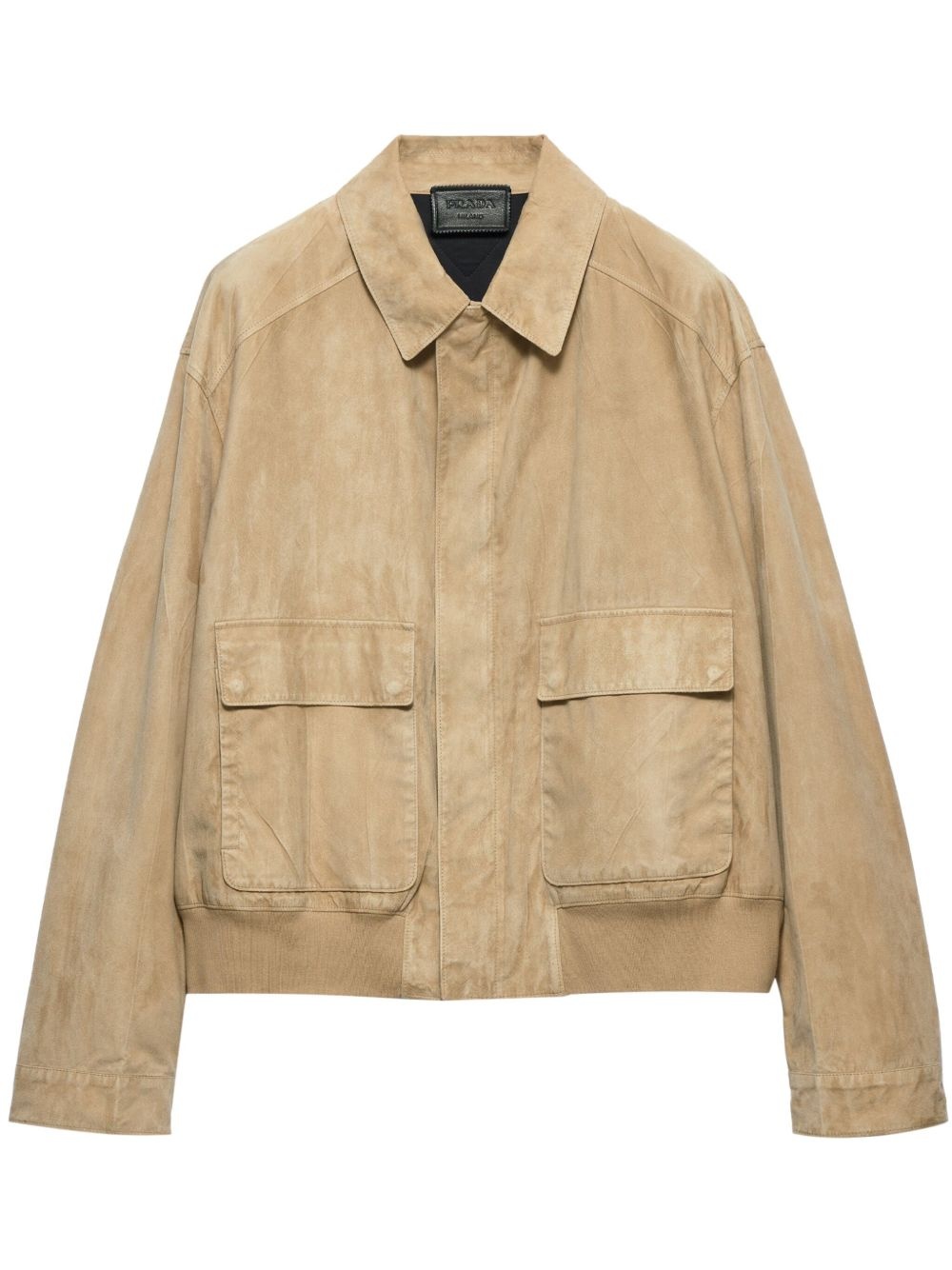 suede bomber jacket Highlights - Sand beige - Front press-stud and zip fastening - Two front flap pockets - Spread collar - Drop shoulder Composition Suede 100%, Cotton 100%