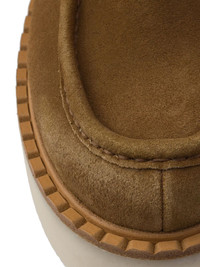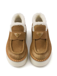 Suede loafers Highlights - Brown - Suede - Enamel triangle logo - Embossed logo to the rear - Round toe - Moc stitching - Front strap detail - Shearling lining - Mid-top design - Flatform sole - Rubber sole Composition Suede 100% SIZE & FIT Measurement PLATFORM 1.77 in(4.5 cm)