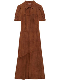 suede midi dress Highlights - Barley brown - Suede - Panelled design - Front button placket - Spread collar - Short sleeves - Elasticated cuffs - Fitted waistline - Straight hem - Mid-length Composition Suede 100%