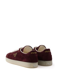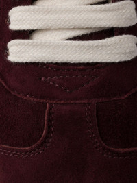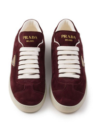 suede sneakers Highlights - Burgundy - Calf leather/calf suede - Front lace-up fastening - Enamel triangle logo - Logo-print tongue - Branded heel counter - Round toe - Branded insole - Flat rubber sole Composition Suede 100%