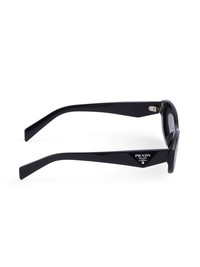 Symbole oval-frame sunglasses Designed to express ‘bold femininity’, Prada’s Symbole sunglasses are defined by their oversized oval frame and sleek black hue. The sculpted arms are embellished with a silver-tone logo print for a recognisable finish. Highlights - Black - Acetate - Oval frame - Grey tinted lenses - Logo print at the arm - Sculpted arms - Curved tips - These glasses come with a protective case. Composition Acetate 100%