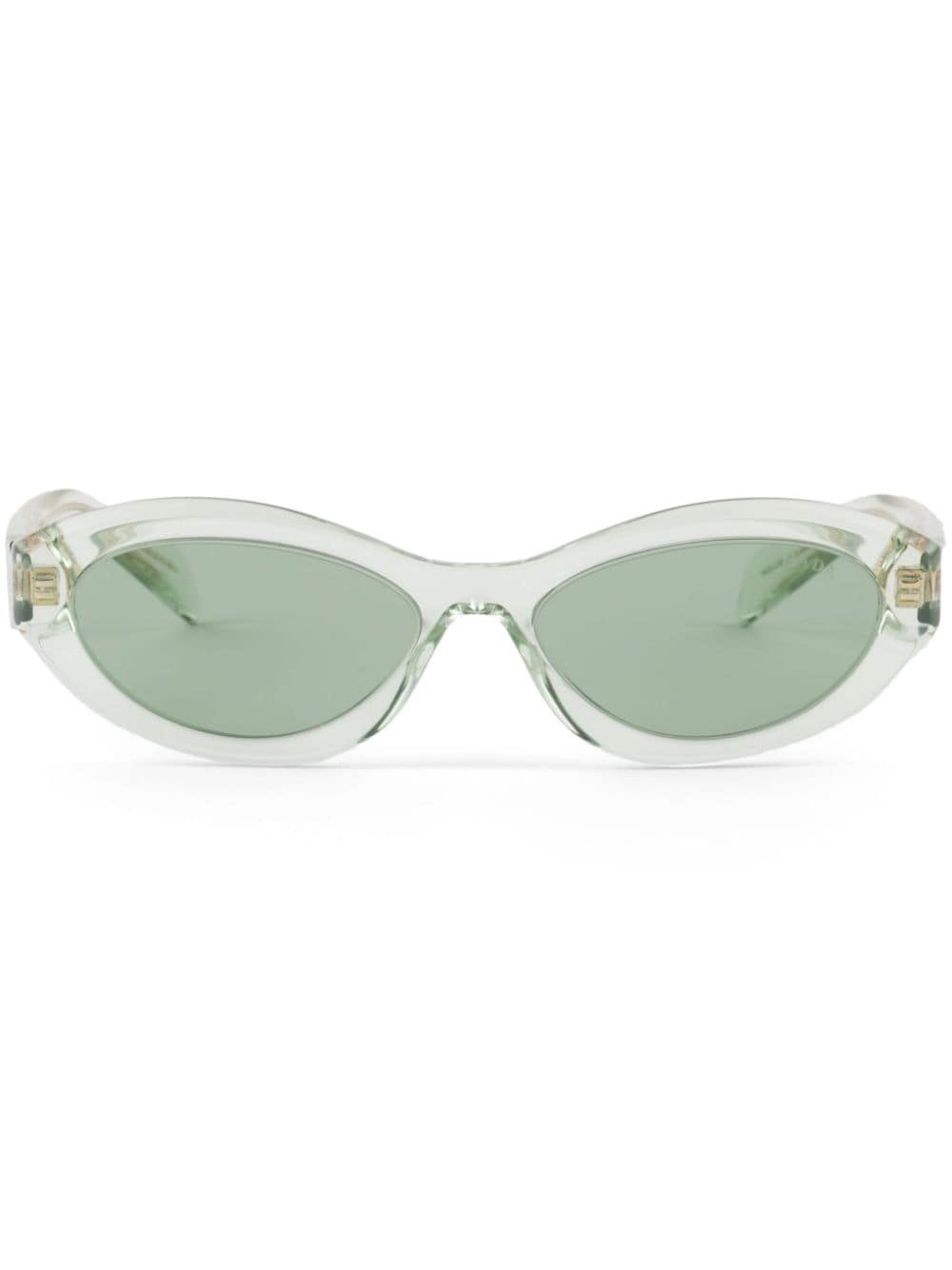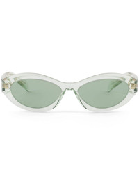 Symbole oval-frame sunglasses Highlights - Mint green - Acetate - Transparent design - Oval frame - Green tinted lenses - Uv-protective lenses - Lens decal - Logo print at the arm - Sculpted arms - Curved tips - These glasses come with a protective case. Composition Acetate 100% SIZE & FIT Measurement Arm Length 5.7 in(14.5 cm) Bridge Width 0.62 in(1.6 cm) Lens Diameter 2.16 in(5.5 cm)