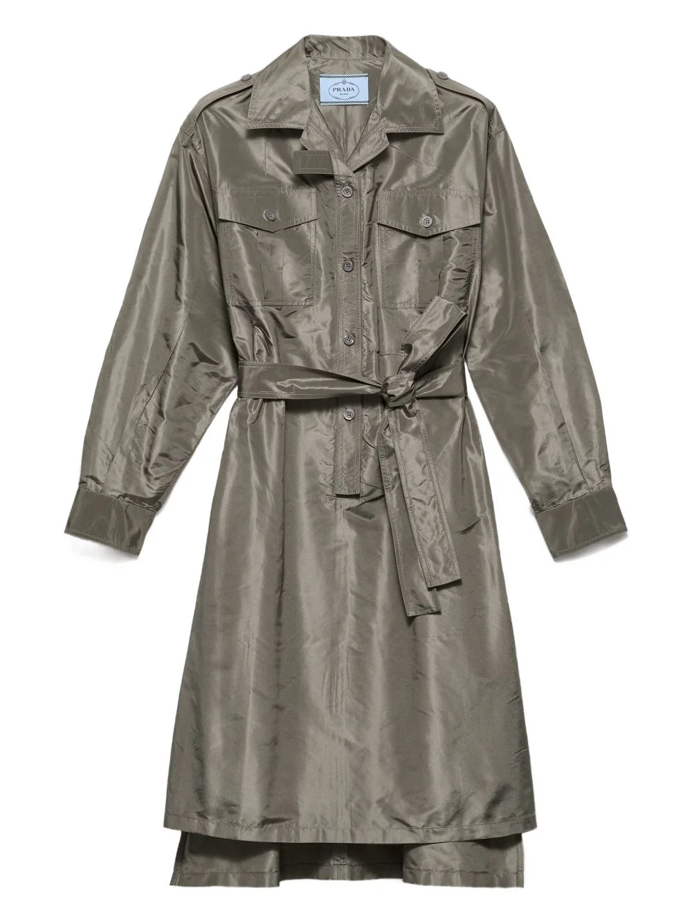 taffeta midi dress Highlights - Green - Camp collar - Front button closure - Side inset pockets - Triangle logo - Side slits Composition Silk 100% Washing instructions Read Manufacturer Guidelines