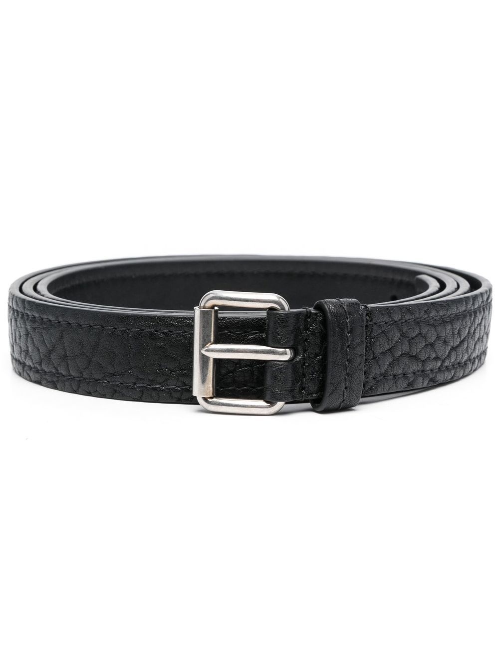 textured leather belt black calf leather silver-tone hardware textured finish punch-hole detailing buckle fastening Composition Calf Leather 100% SIZE & FIT Measurement Maximum Length 39.37 in(100 cm) Minimum Length 35.43 in(90 cm) WIDTH 0.98 in(2.5 cm)