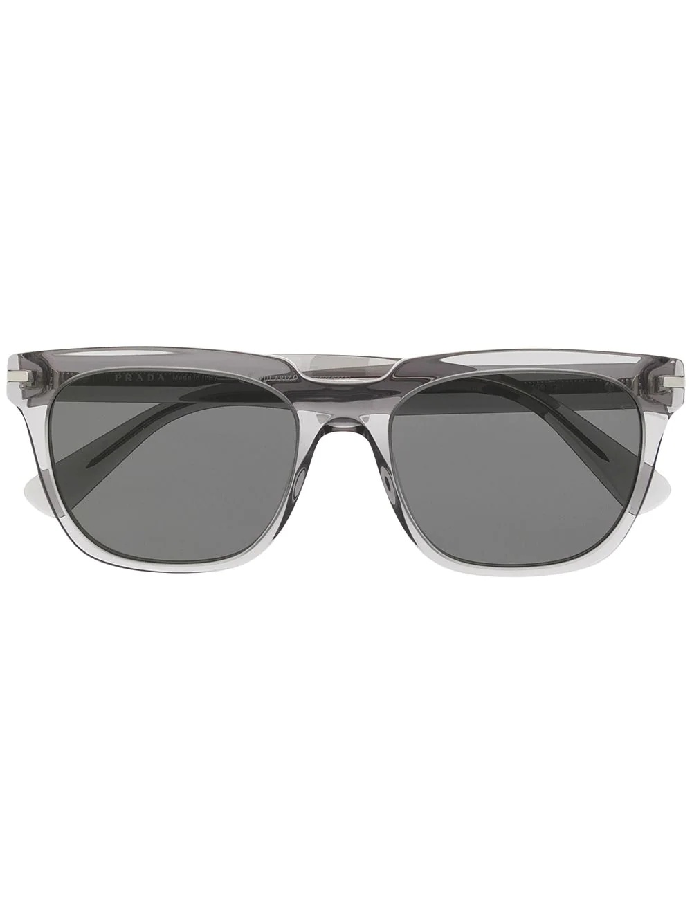 tinted wayfarer sunglasses Keeping to the brand's futuristic aesthetic, these tinted wayfarer glasses from Prada Eyewear are designed in a transparent grey hue with tinted lenses. Crafted in the wayfarer shape that is universally known, they are finished with the silver-tone logo adorning the arms. Composition PVC 100% SIZE & FIT Measurement Arm Length 5.9 in(15 cm) Bridge Width 0.74 in(1.9 cm) LENGTH 5.9 in(15 cm) Lens Diameter 2.2 in(5.6 cm) WIDTH 5.9 in(15 cm)