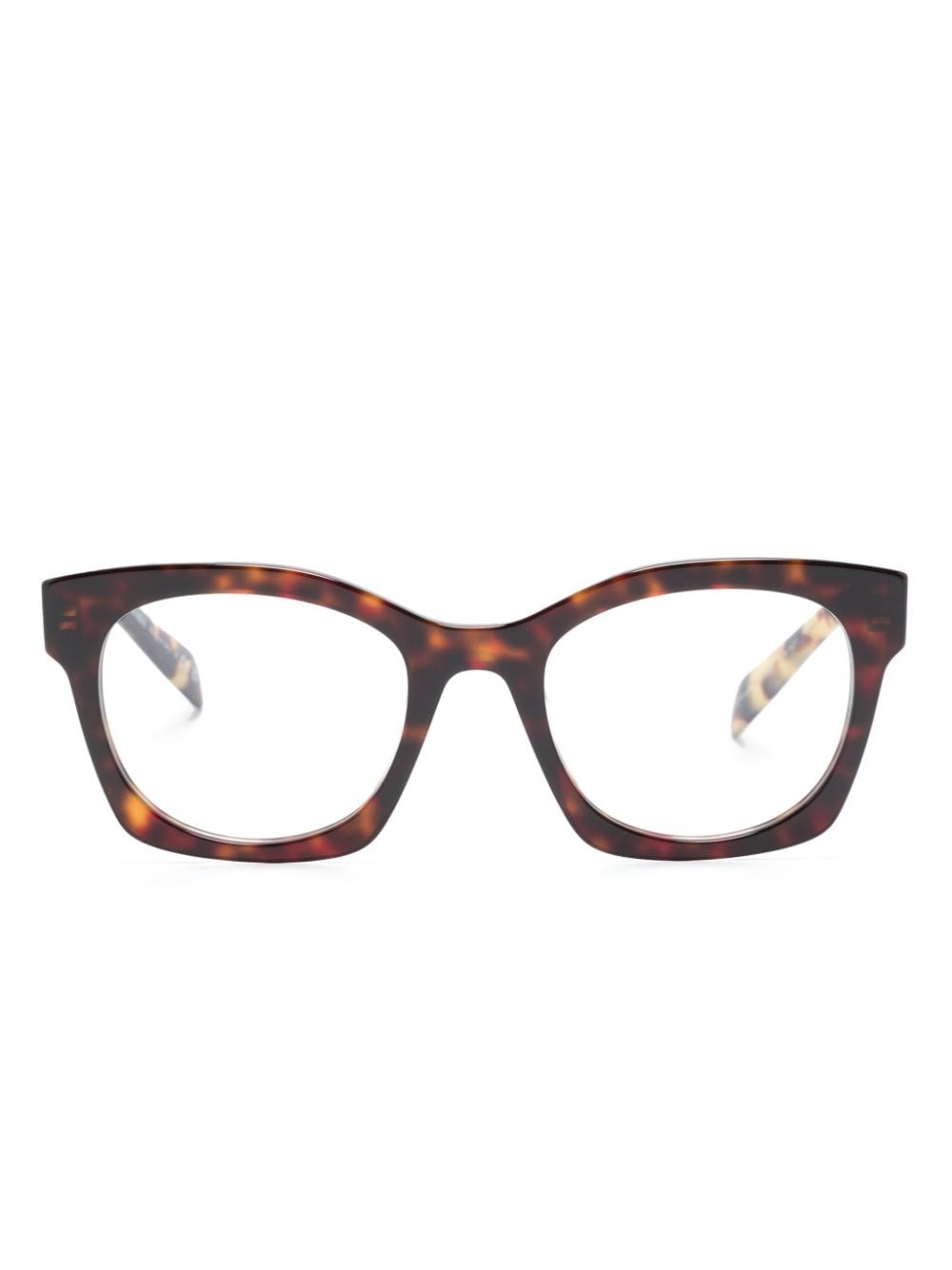 tortoiseshell D-frame glasses Highlights - Animalier brown/blue - Acetate - Tortoiseshell effect - Logo print at the arm - D-frame - Clear lenses - Straight arms - Curved tips - All glasses from farfetch are sold as non-prescription frames. - These glasses come with a protective case. Composition Outer: Acetate 100% SIZE & FIT Measurement Arm Length 5.51 in(14 cm) Bridge Width 0.78 in(2 cm) Lens Diameter 1.96 in(5 cm)