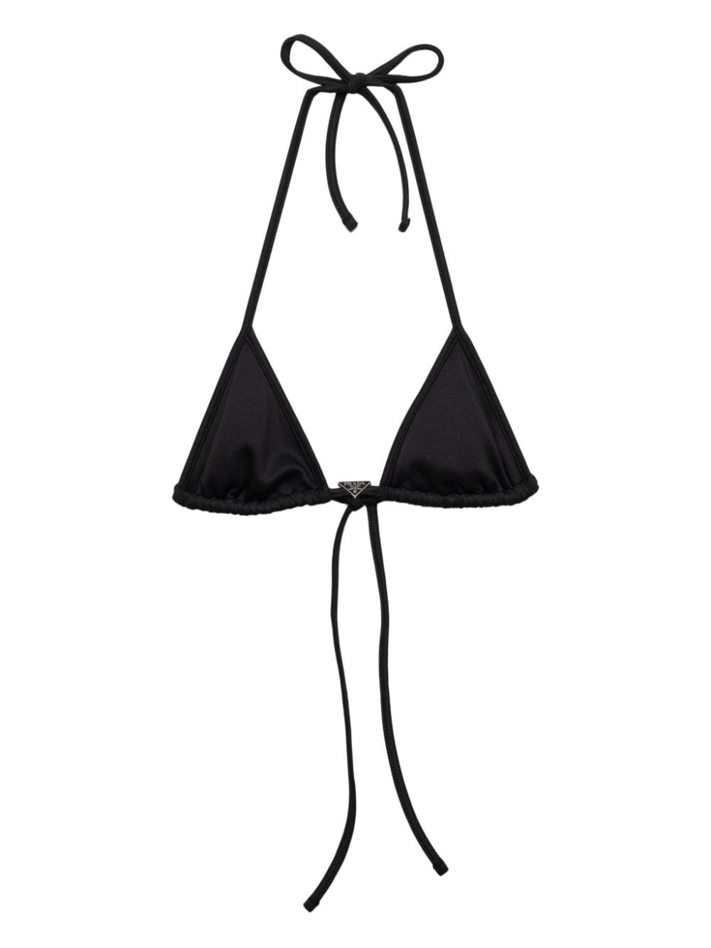 triangle-cup halterneck bikini top Highlights - Black - Enamel triangle logo - Triangle cup - Halterneck tie fastening - Rear tie fastening - Spaghetti straps - Be mindful to try on swimwear over your own garments. Composition Nylon 100%