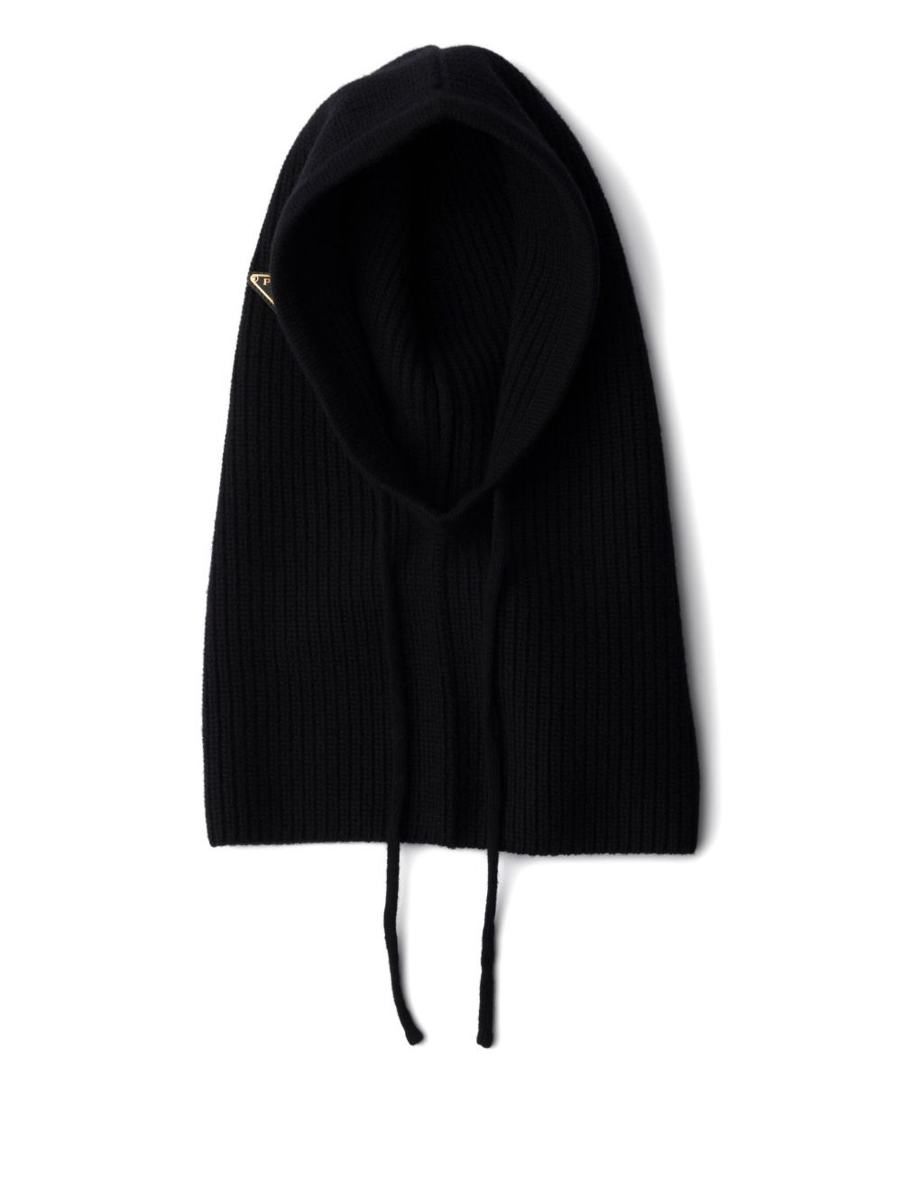 triangle-logo balaclava Highlights - Black - Ribbed knit - Drawstring fastening - Enamel triangle logo Composition Cashmere 100%, Wool 100%