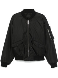 triangle-logo bomber jacket Highlights - Regular fit ribbed knit collar straight sleeve zipper closure pockets with flap and button ribbed knit cuffs drop shoulder straight hem lined and quilted enameled metal triangle logo the fabric is made with regenerated yarn obtained from recycled plastic materials collected in the oceannylon Composition Outer: Polyurethane Resin 100%, Recycled Polyamide 100%, Virgin Wool 80%, Polyamide 18%, Elastane 2% Lining: Recycled Polyamide 100%, Recycled Polyester 55%, Polyester 45% SIZE & FIT Model measurements Height 6 ft 2 in(1.87 m) Bust/Chest 36.41 in(92.5 cm) Hips 37 in(94 cm) Waist 29.52 in(75 cm) FittingInformation Designed to be unstructured, offering a loose fit throughout The ribbed hem offers a close, comfortable fit Made from a padded non-stretch fabric, giving it no natural elasticity