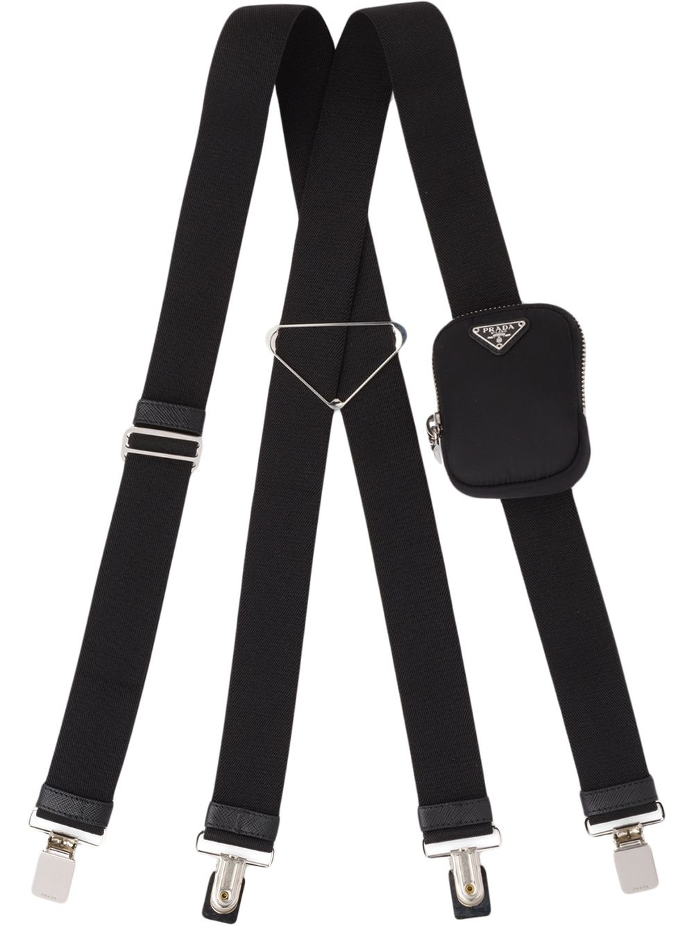 triangle-logo braces It's all in the accessories. Add a contemporary touch to your look with these triangle-logo braces from Prada. All eyes on you. Composition Nylon 100%