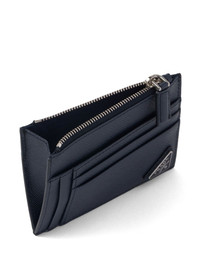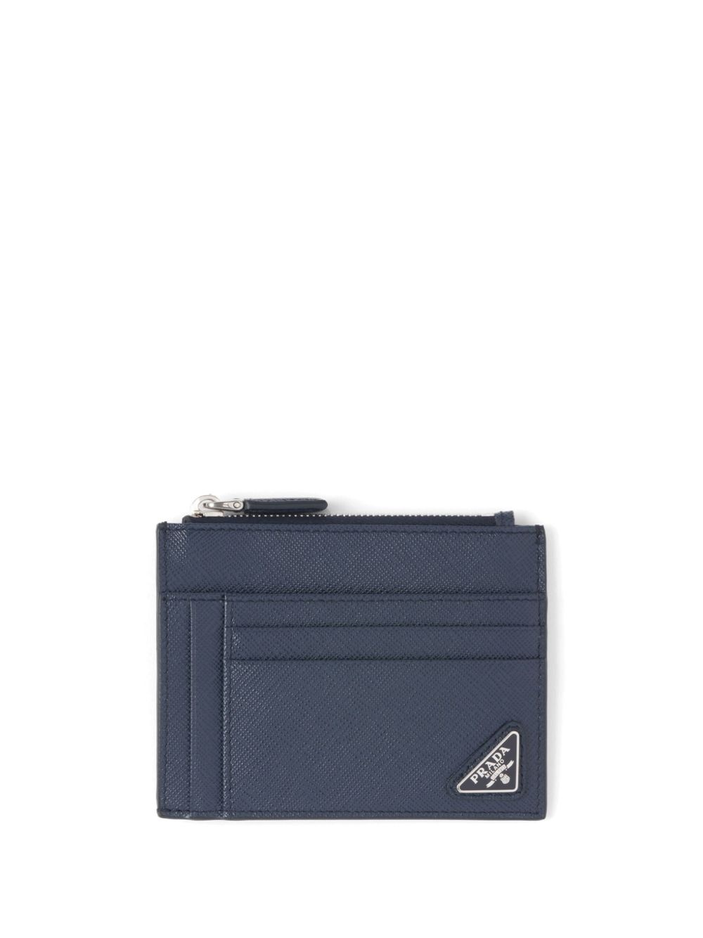 triangle logo cardholder Combining practicality and sleek style, this Prada piece offers a compact construction with multiple card slots. The brand's subtle take on branding can be seen in the signature triangle logo at the front. Highlights - Baltic blue - Leather - Enamel triangle logo - Top zip fastening - Card slots - Silver-tone hardware Composition Outer: Calf Leather 100% SIZE & FIT Measurement LENGTH 3.54 in(9 cm) WIDTH 4.72 in(12 cm)