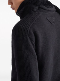 triangle-logo wool-cashmere cardigan Highlights - Black - Cashmere - Knitted construction - Triangle logo - Ribbed trim - High neck - Front zip fastening - Drop shoulder - Long sleeves - Ribbed cuffs and hem Composition Cashmere 100% Washing instructions Read Manufacturer Guidelines