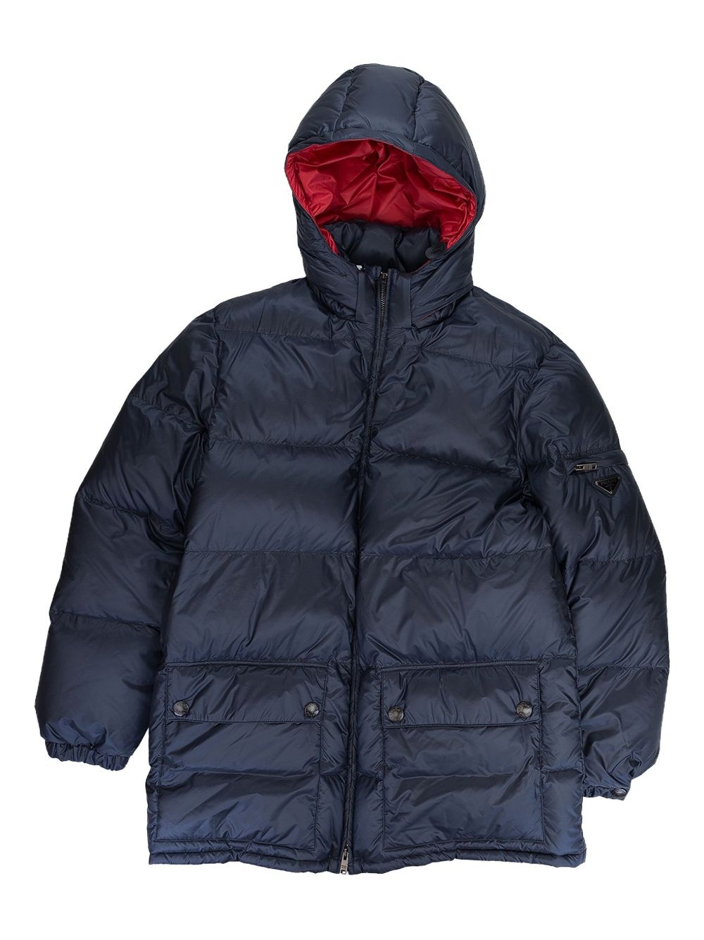 triangle-logo coat Highlights - Navy blue - Two-way zip fastening - Padded design - Quilted finish - Classic hood - Sleeve zip pocket - Front flap pockets - Long sleeves - Elasticated cuffs - Straight hem Composition Fabric 100%
