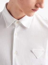 triangle-logo cotton shirt Highlights - White - Cotton - Poplin texture - Triangle logo - Mother-of-pearl buttons - Classic collar - Front button fastening - Long sleeves - Buttoned cuffs - Straight hem Composition Cotton 100%
