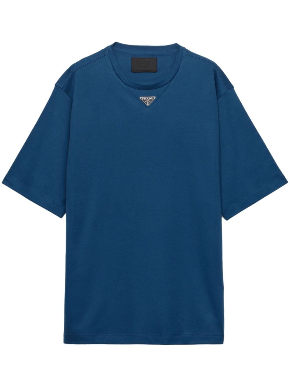 triangle logo cotton t-shirt Highlights - Blue - Cotton - Crew neck - Enamel triangle logo - Short sleeves - Straight hem Composition Cotton 100%