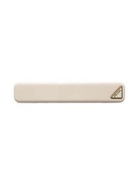 triangle-logo hair clip Highlights - Ivory white/gold-tone - Enamel triangle logo - Rectangle shape - Curved corners - Clip fastening Composition Plastic 100%, Metal 100% SIZE & FIT Measurement LENGTH 0.39 in(1 cm) WIDTH 3.14 in(8 cm)