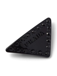 triangle-logo hair clip Prada turns their signature triangle logo into a hair clip here. In a black design, the iconic silhouette is detailed with crystal embellishment for a shimmering finish. Composition Other Materials 100%