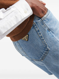 Triangle-logo high-rise denim shorts