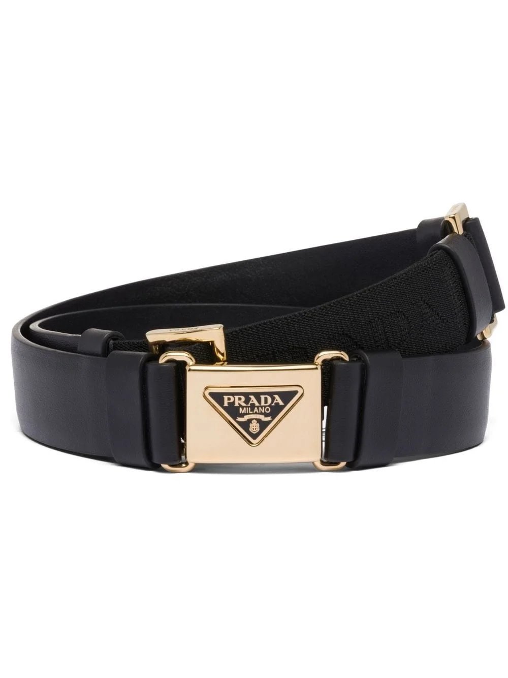 triangle-logo leather belt black calf leather triangle logo gold-tone hardware panelled design clasp fastening Composition Calf Leather 100%, Metal 100%