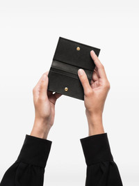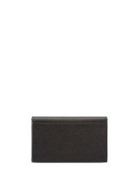 triangle-logo leather cardholder Highlights - Black - Saffiano leather - Textured finish - Triangle logo - Foldover top with press-stud fastening - Internal logo stamp - Internal card slots Composition Outer: Leather 100% SIZE & FIT Measurement DEPTH 0.78 in(2 cm) LENGTH 4.33 in(11 cm) WIDTH 2.36 in(6 cm)