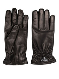 triangle-logo leather gloves Highlights - Black - Enamel triangle logo - Elasticated cuffs - Pull-on style Composition Outer: Calf Leather 100% Lining: Cashmere 100%