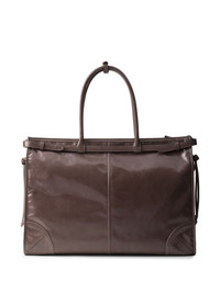 triangle-logo leather tote bag Highlights - Brown - Leather - Enamel triangle logo - Decorative buckle detailing - Two rolled top handles - Adjustable handle wrap - Adjustable detachable shoulder strap - Top zip fastening - Main compartment - Internal zip-fastening pocket - Internal logo plaque - Logo-jacquard lining - Silver-tone hardware Composition Outer: Smooth Leather 100% Lining: Cotton 100%, Nappa Leather 100% SIZE & FIT Measurement DEPTH 4.72 in(12 cm) HEIGHT 9.44 in(24 cm) WIDTH 14.96 in(38 cm)