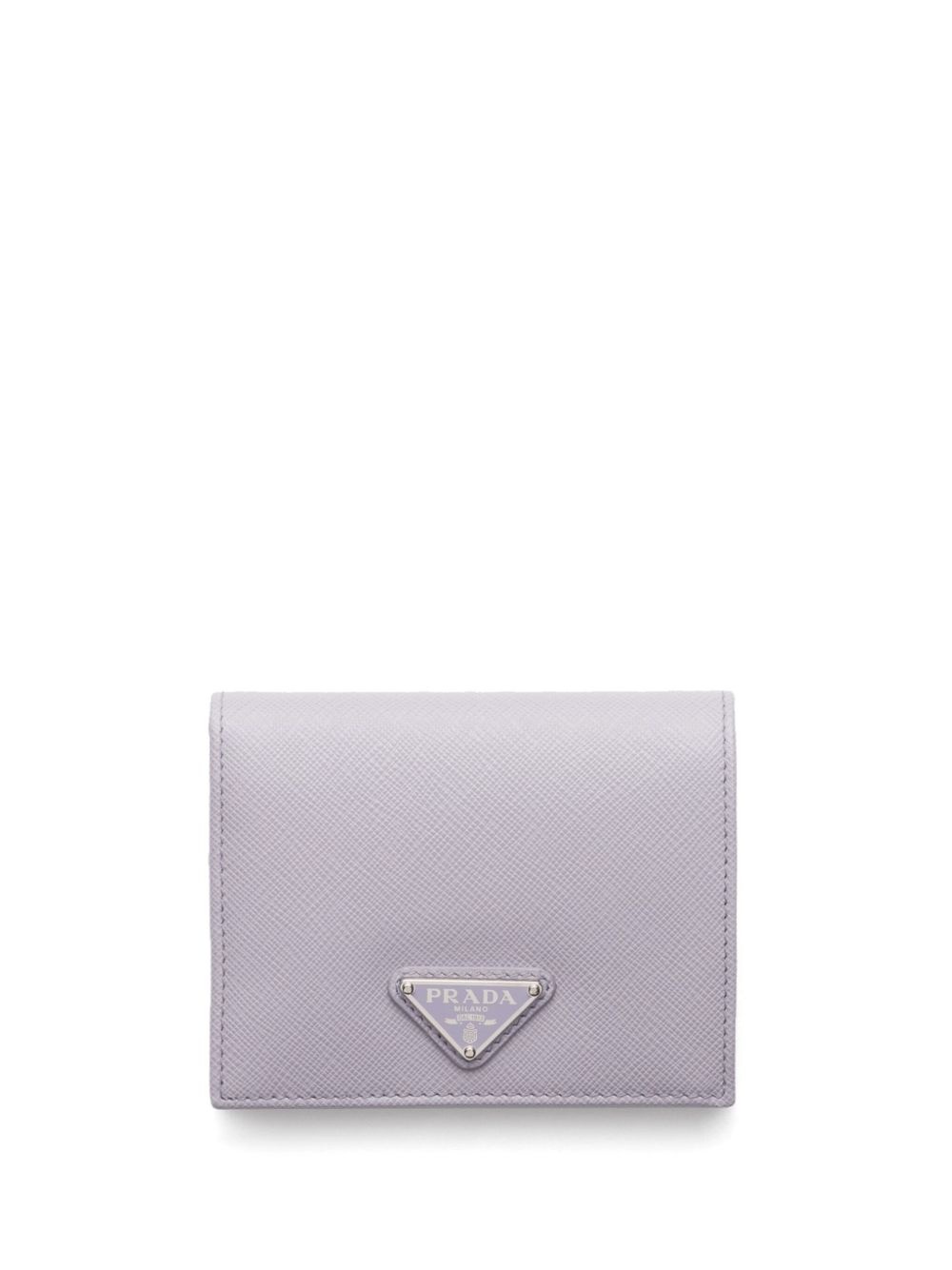 triangle-logo leather wallet Highlights - Lilac purple - Saffiano leather - Textured finish - Triangle logo - Bi-fold design - Concealed press-stud fastening - Internal logo stamp - Internal card slots - Internal flap pocket Composition Outer: Leather 100% SIZE & FIT Measurement LENGTH 4.33 in(11 cm) WIDTH 3.14 in(8 cm)