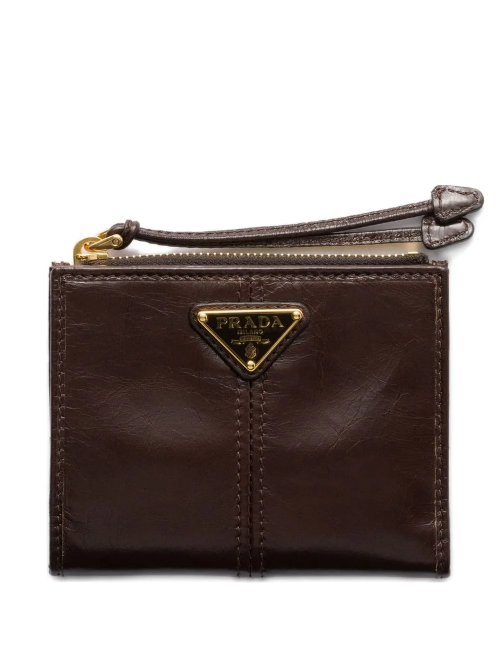 triangle-logo leather wallet Highlights - Brown - Enamelled metal triangle logo - Snap closure - Two inside pockets - Two interior zipper coin purses Composition Outer: CALFSKIN 100%